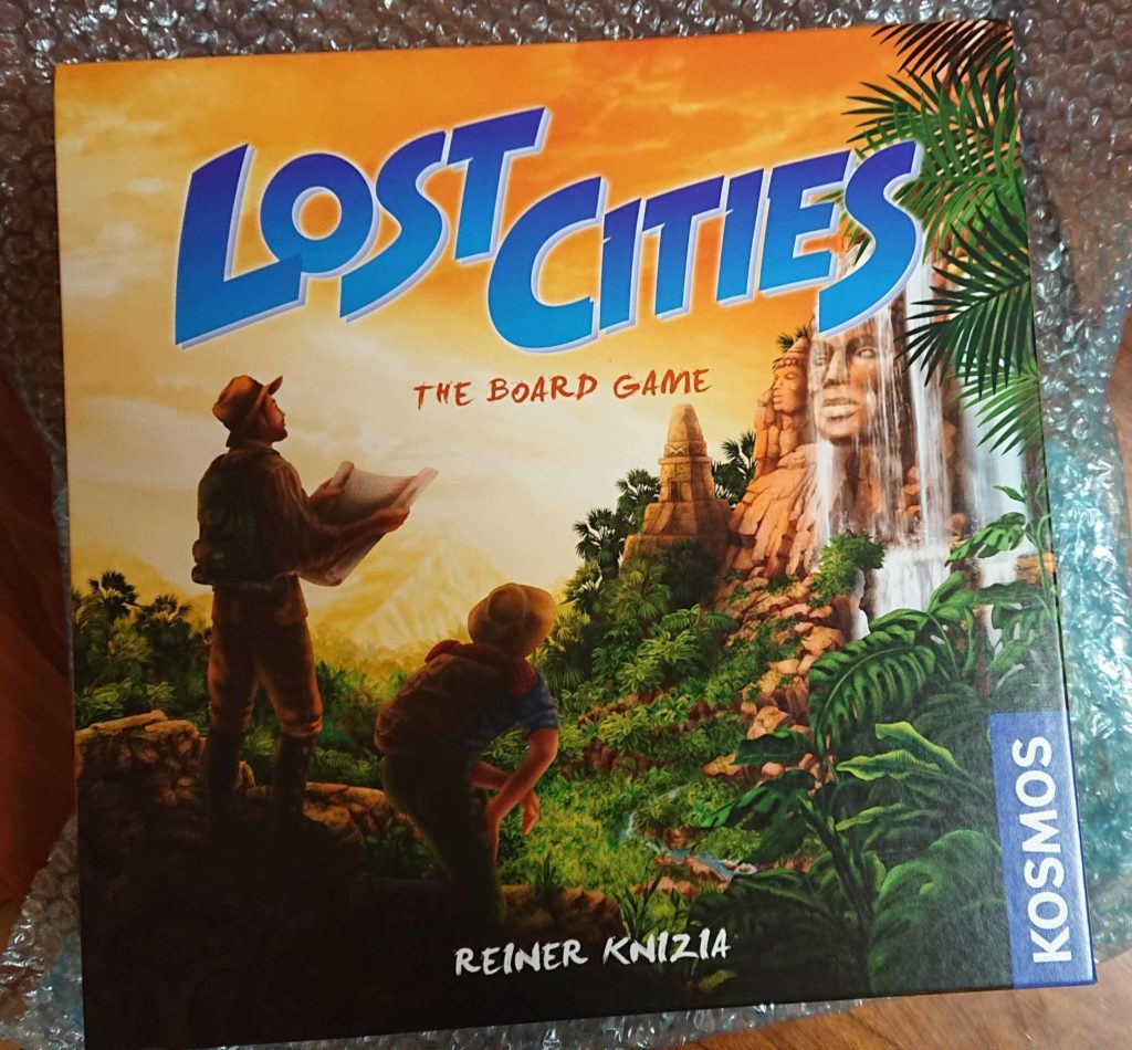 最後にやったのが「ロストシティ ボードゲーム」です。「ロストシティ」は2人用ゲームですが、それを4人にしたのがドイツゲーム大賞を取った「ケルト」それをアメリカ版にリメイクしたのが「ロストシティ ボードゲーム」ややこしいですが、ロストシティの多人数版です。