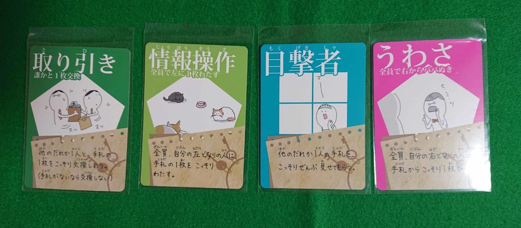 下の写真が各カードです。イラストがゆるキャラな感じがまた良いですよね。!?