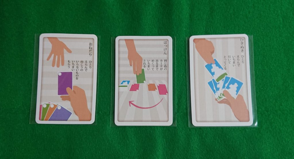 下の写真は特殊カード、左から【相手からいらないカードをもらう】