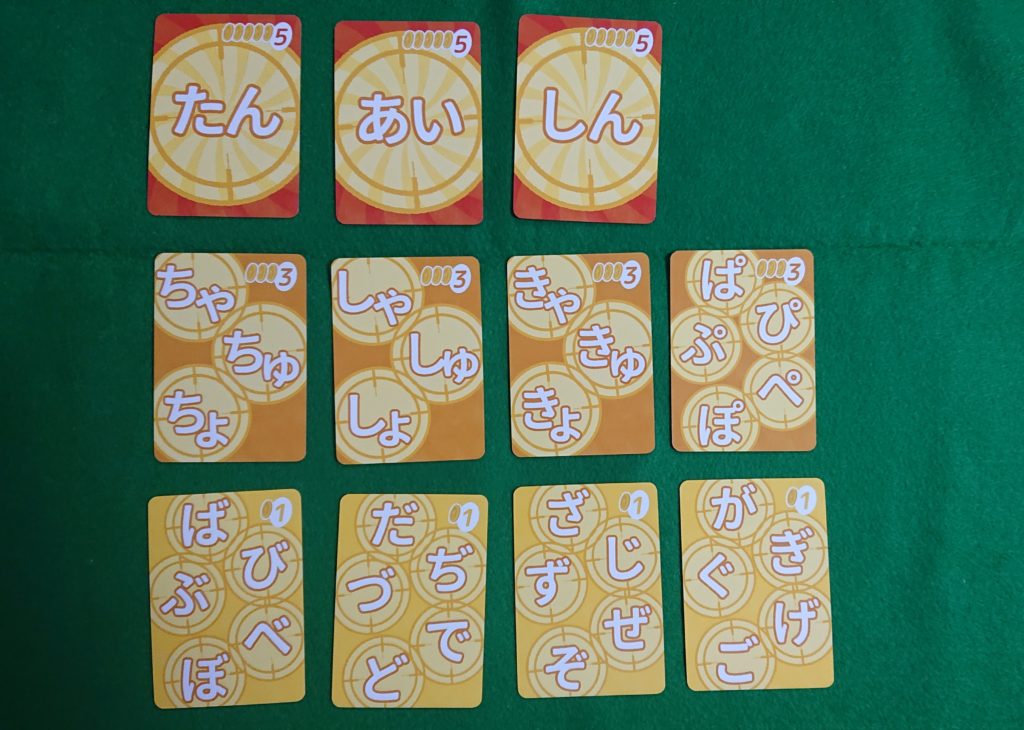 下が文字カード、右上がそのカードを獲得した時の点数です
