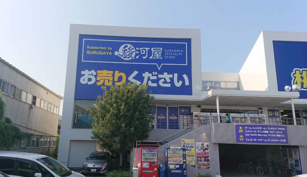 1階が駿河屋でボードゲーム・トレーディングカード、2階は桃太郎王国で、ゲーム・フィギュア・プラモデル・コミックなどを売っています。