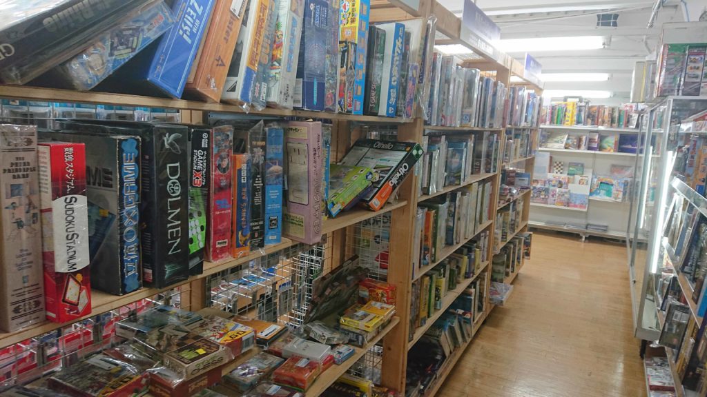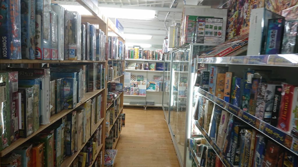 店の中は3列展示がされていて、2列がトレカ売り場で、ボードゲームは1列にありました。新品ボードゲームと中古ボードゲームが並んでいました。数としては正直なところ秋葉原のように多数の商品はありませんでしたが、主要なゲームはあったと思います。