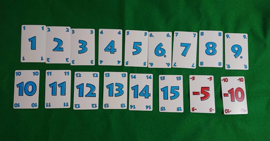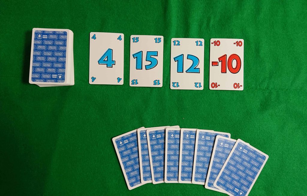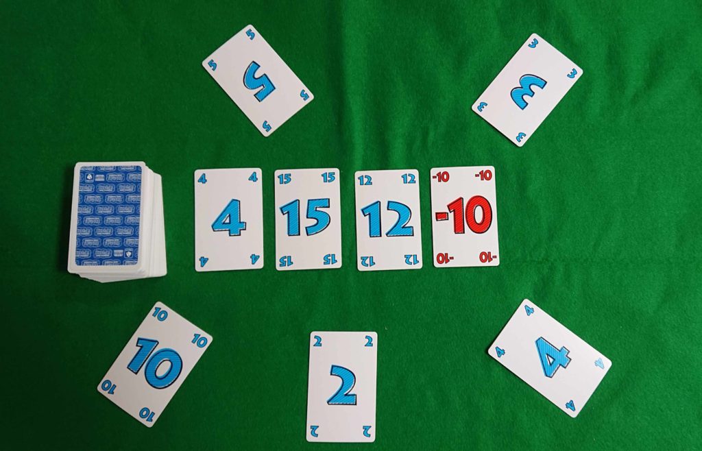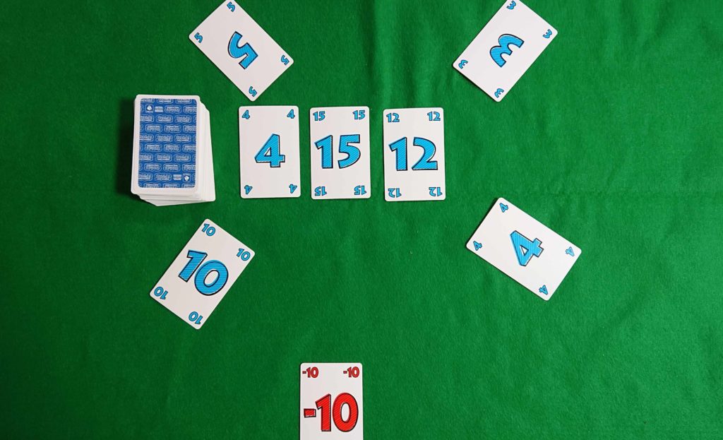 上の写真の場合2を出したプレイヤーが数字-10のカードを獲得します。-10を獲得したプレイヤーはその回はゲームから抜けます。その際自分の手札を好きなだけ捨てて、手札を山札から引くことが出来ます。