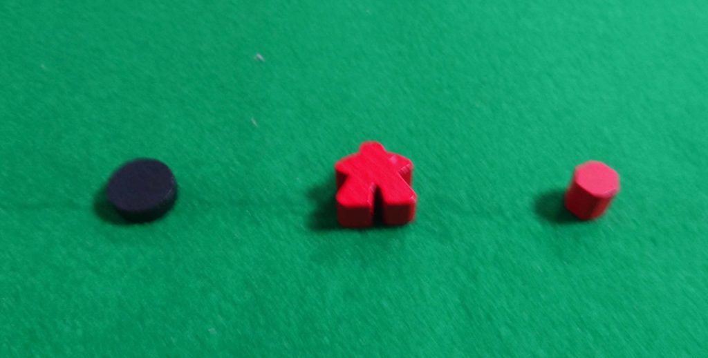 下の写真のコマは。左から決算マーカー・議員コマ(勝利点記録コマ)・後援者コマです。