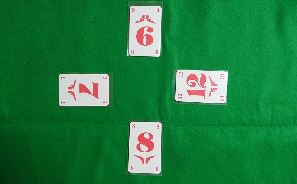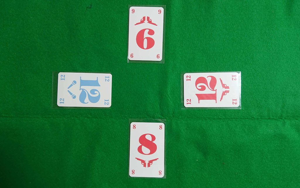 下の写真の場合は12を出したプレイヤーがカードを引き取ります。