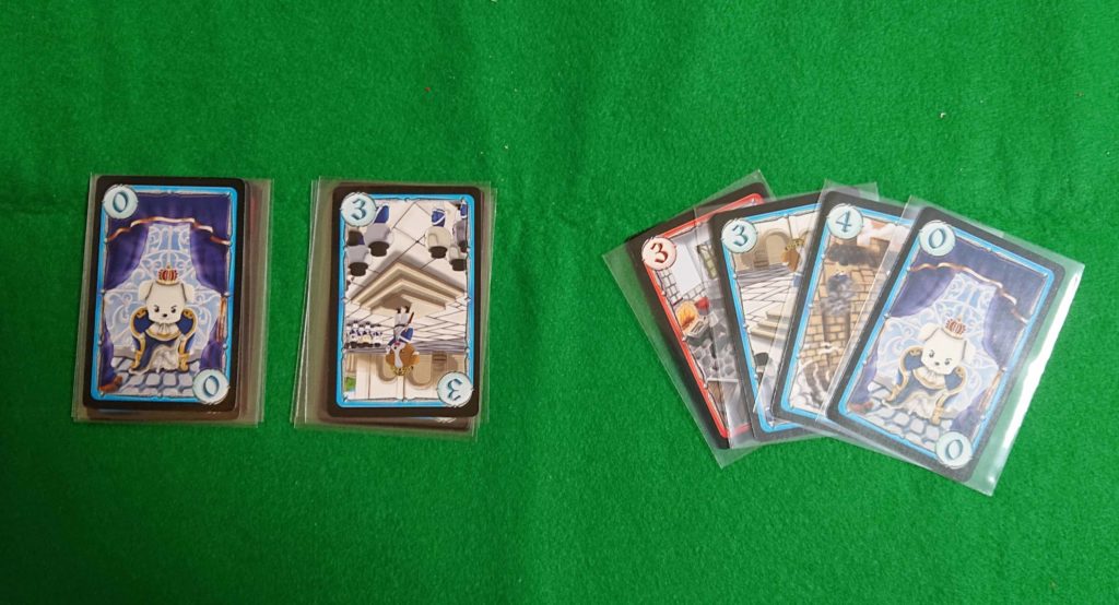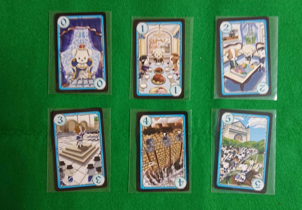 下の写真の場合は、革命派8・王宮派4なので、左の0を出したプレイヤーがすべてのカードを獲得します。