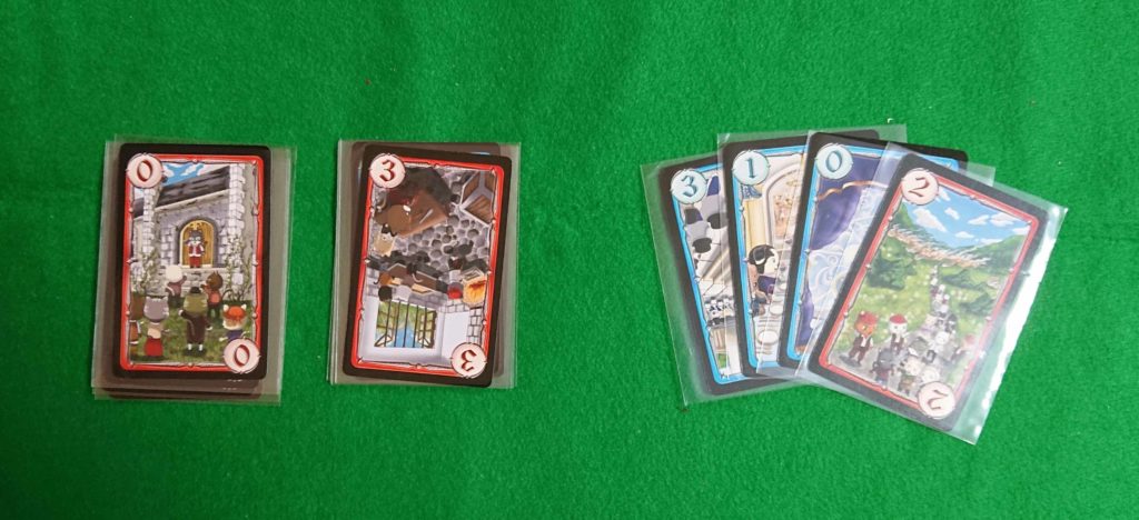 不思議な感じのトリックテイキングとなります。勝利派閥になるためには大きい数字のカードを出さなければならないのですが、カードを獲得するためには1番小さい数字のプレイヤーとなるので、ちょっと考えます。また、勝利派閥になるためにその色のカードを出しきってしまうと、手札に勝利派閥のカードが少なくなり、最終得点が減ります。大きな2つのジレンマがあります。さすが、ライナークニッツアです。