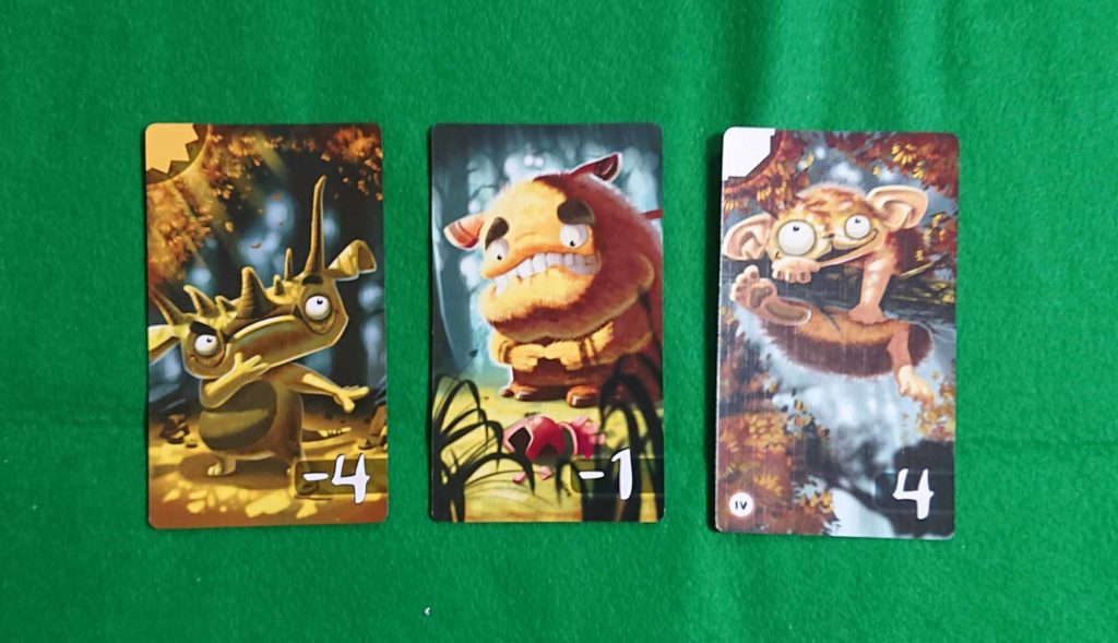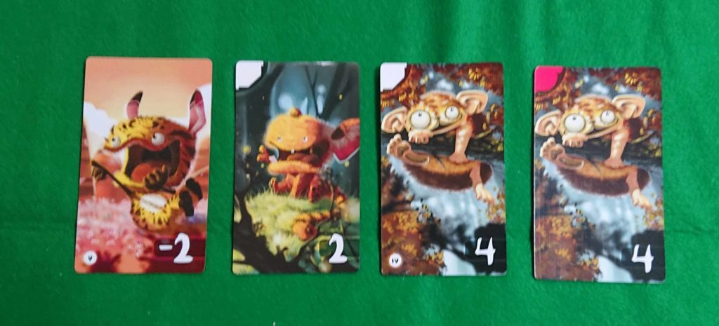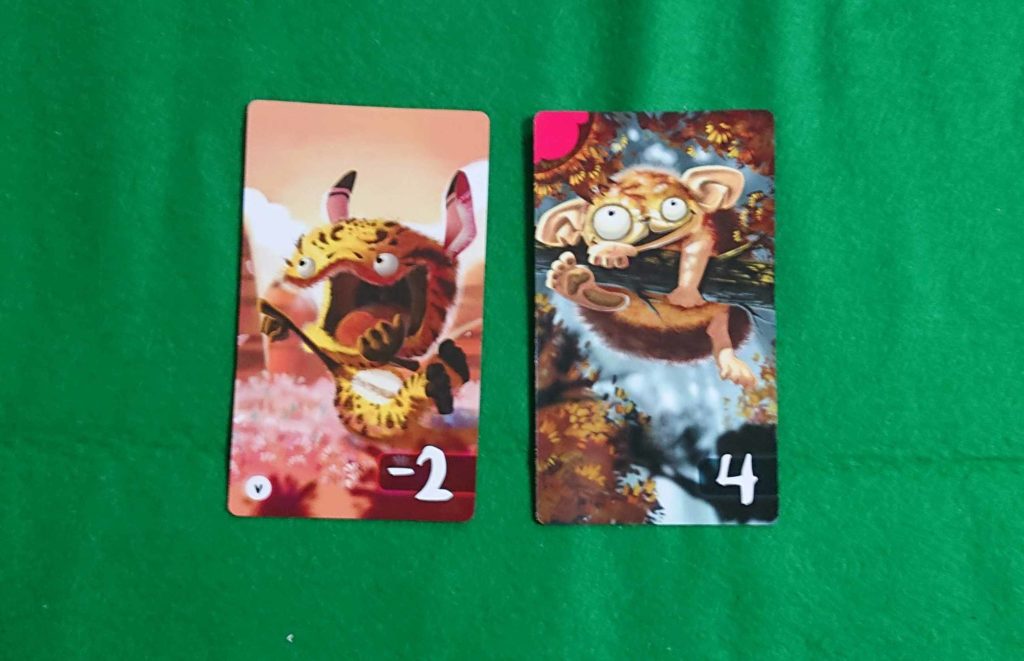 下の写真は、次のプレイヤーが-4のカードを取り、ホタルも2個受け取った状態です。