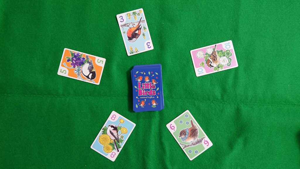 カードをよくシャフルして、山札とします。各プレイヤーは、山札から1枚ずつめくり表にして自分の前に置きます。
