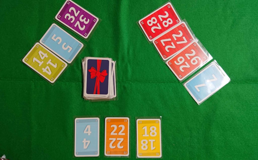 ルールがすっきりしていて分かり易いのに、ゲーム自体はキレがあるのでとても面白いです。連続した数字が取れるかどうかは、ランダムにカードを抜いているので最後まで分かりません。勝負して大きいカードを取るのか、小さいカードを取っていくのか悩みますね。