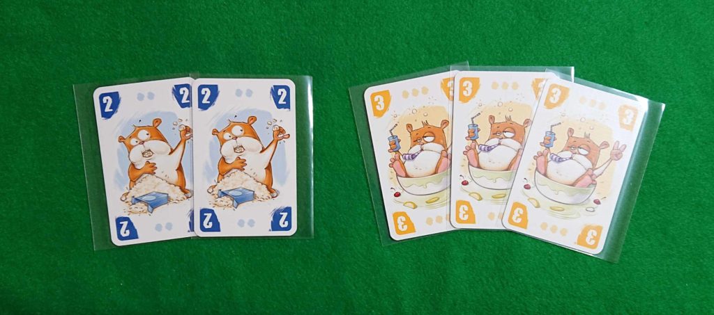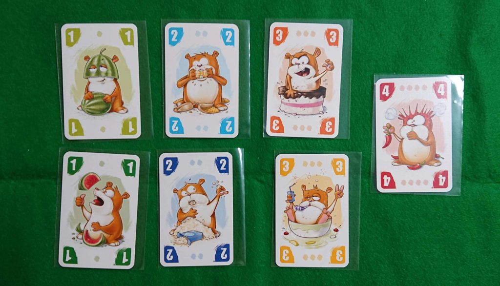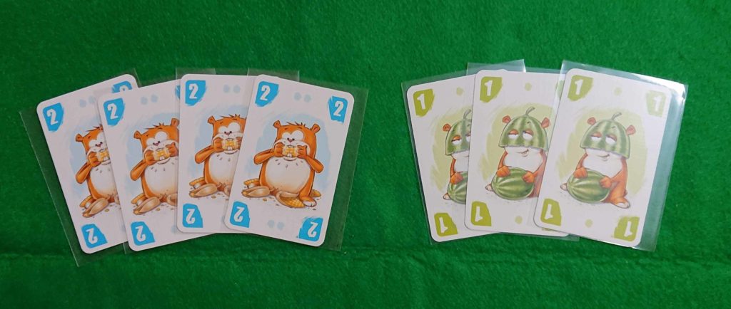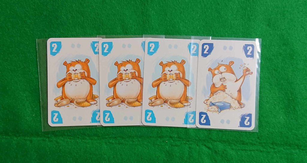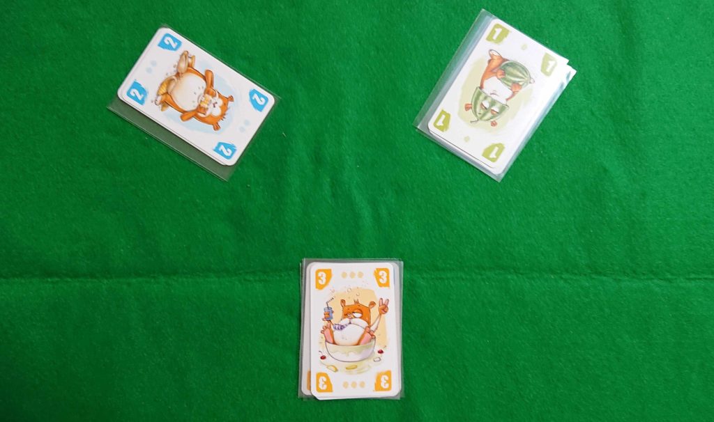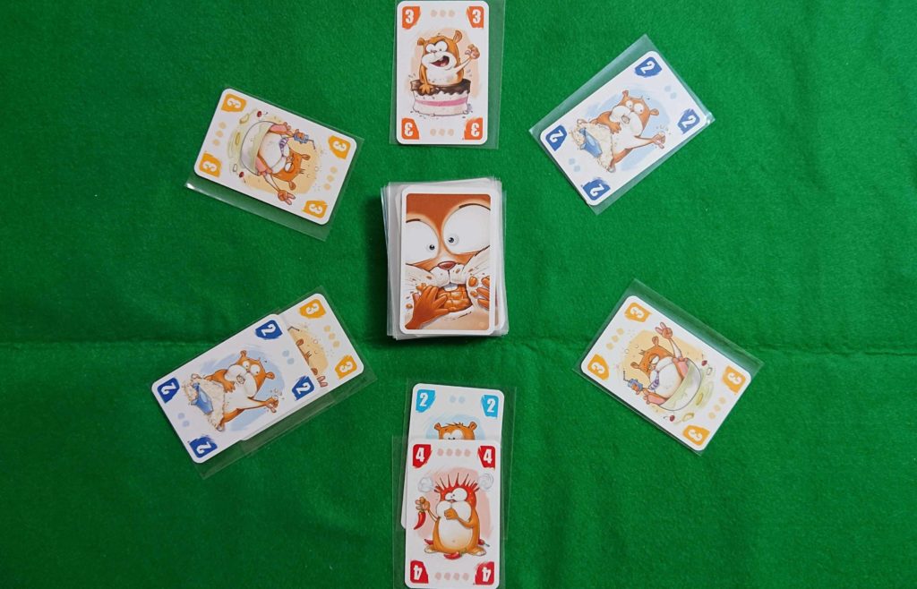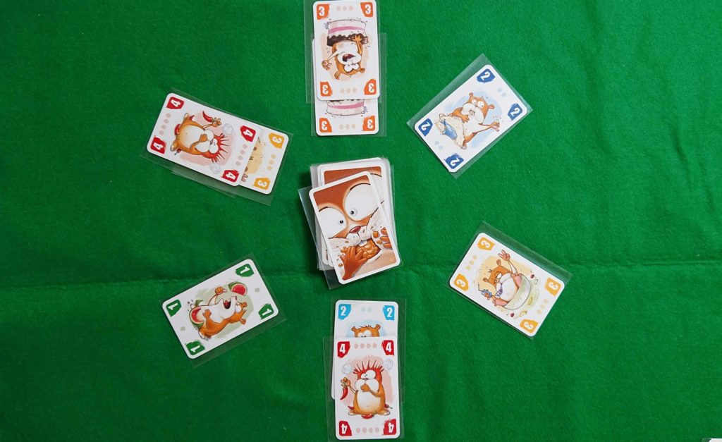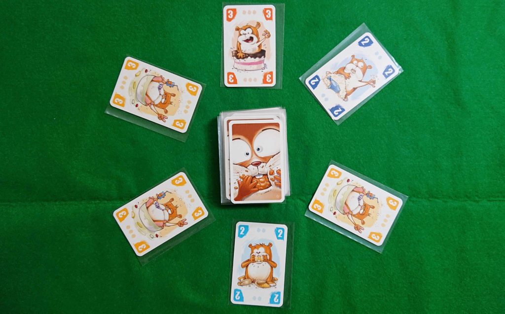 また、各プレイヤーの前に出ている、1番上のハムスターと同じイラストのカードは、カードセットとして出すことが出来ません。