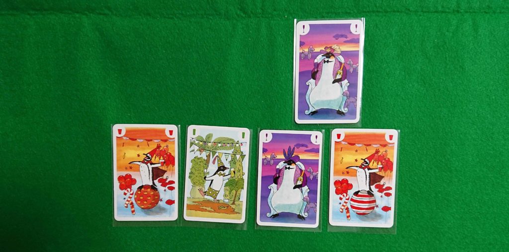 下の写真の場合、2段目に水色のペンギンカードを置くことは出来ません。