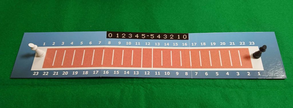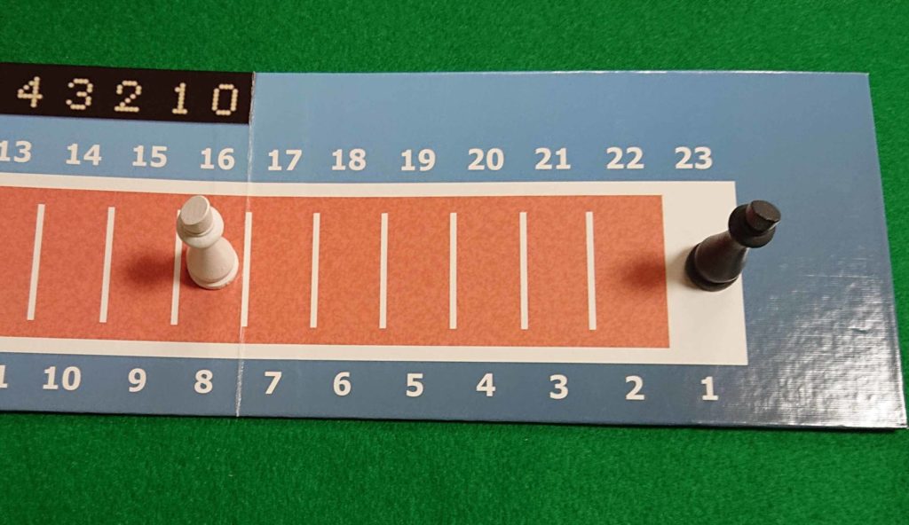 下の写真のが、ボードです。右端と左端に選手のコマを配置します。
