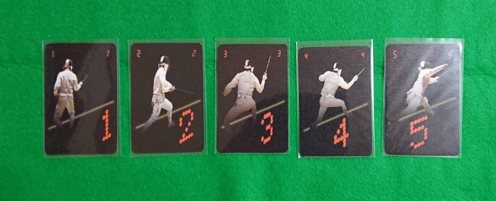 数字のカード1枚を出して、その数だけ前進または後退します。その後、手札を5枚になるよう補充します。
