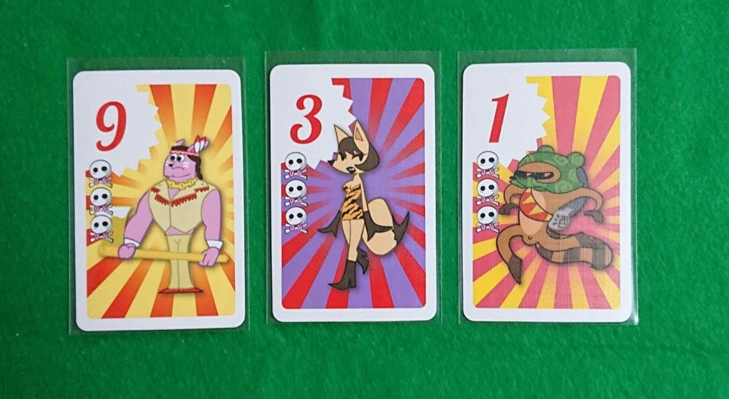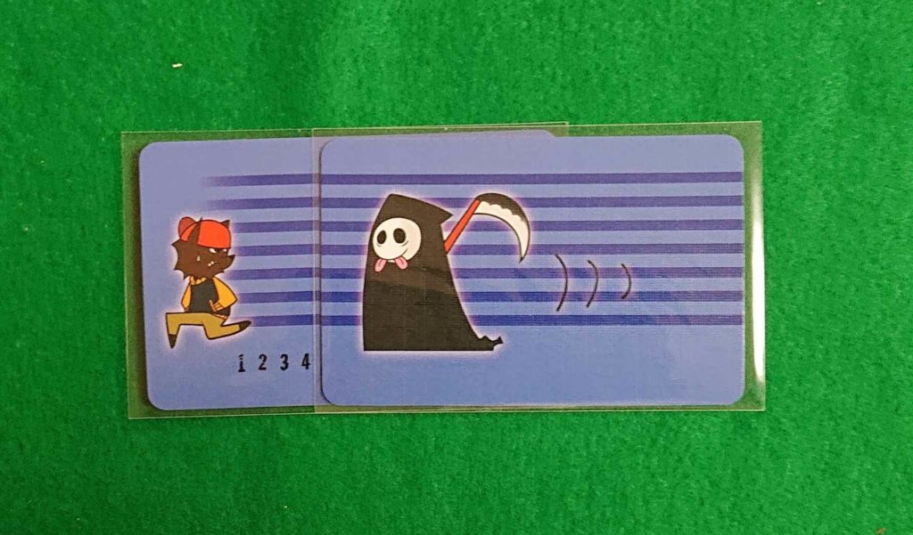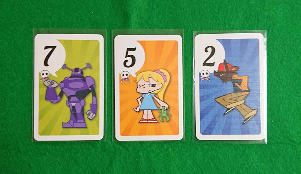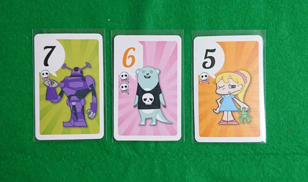 その場合は、手札を公開し、嘘であれば宣言したプレイヤーは、3枚のカードのドクロの合計のライフポイントを減らします。逆に宣言した通りの数字の場合は嘘だと言ったプレイヤーのライフポイントを、やはり3枚のカードのドクロの合計のライフポイントを減らします。