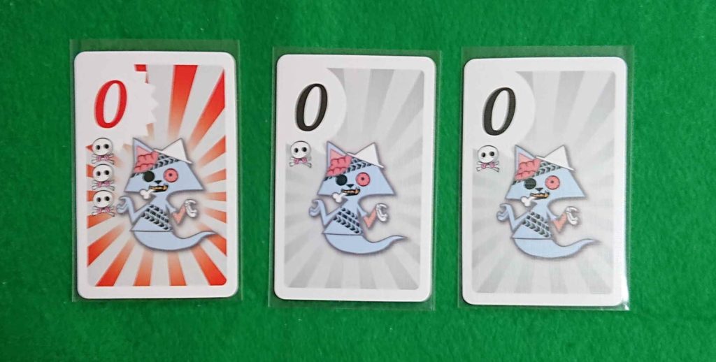 各カードには、左側にドクロマークが描かれています。これは、このカードで負けたときの失点になります。下のカードの場合は、ライフポイントが-3されます。