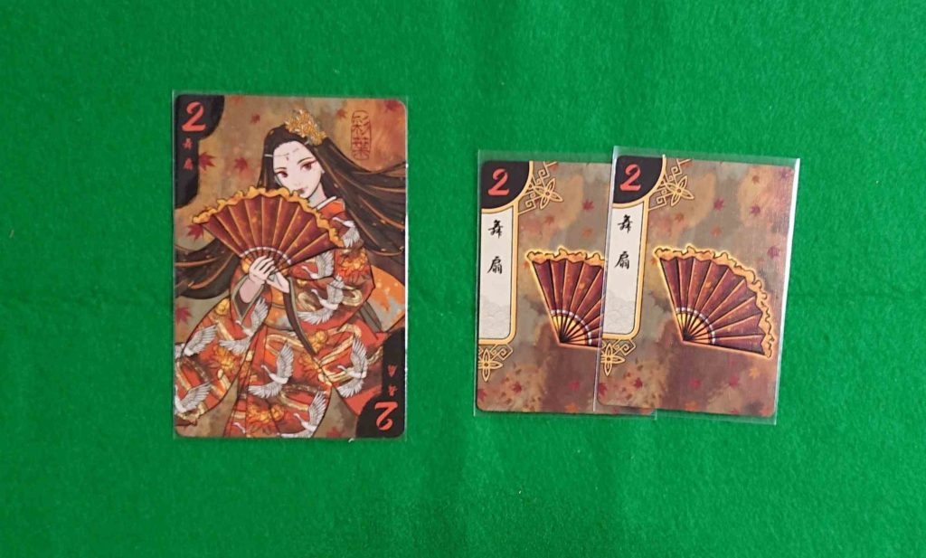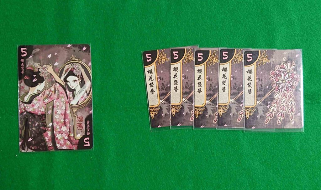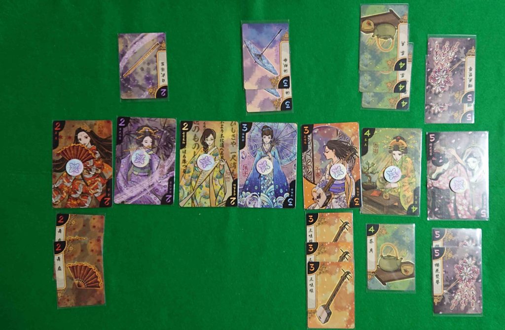 芸者カードの魅力値の数字だけ、道具カードがあります。下の写真の芸者には5枚の道具カードがあります。