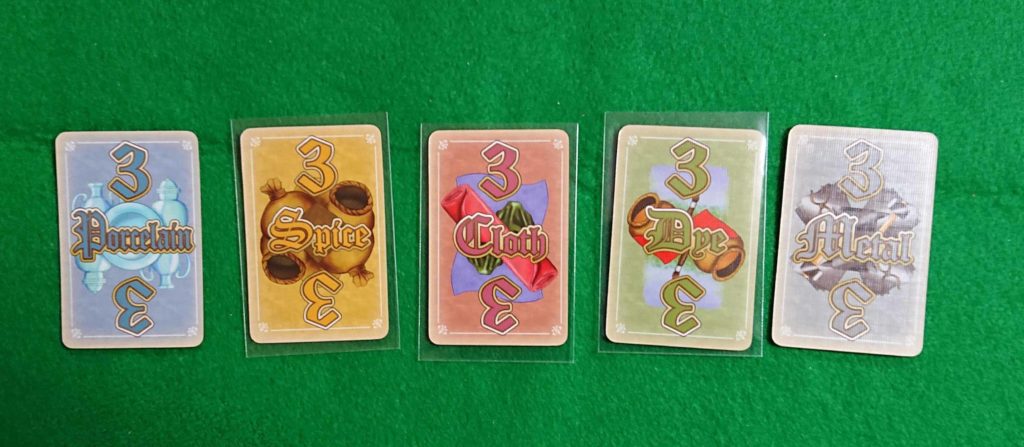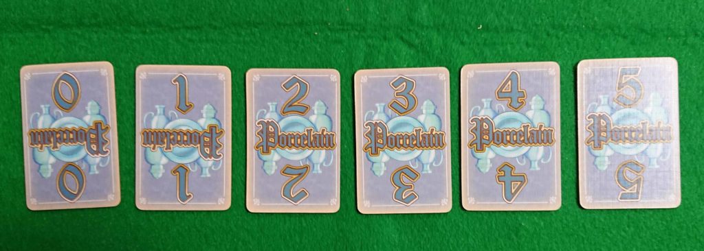 商品カードは、0から5までの数字が描いてあります。数字が商品の価値です。価値5のカードだけ2枚の計7枚です。