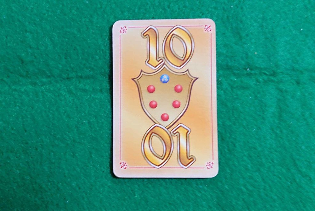例えば、下の写真の場合は、青プレイヤーが10点・黄プレイヤーが5点です。