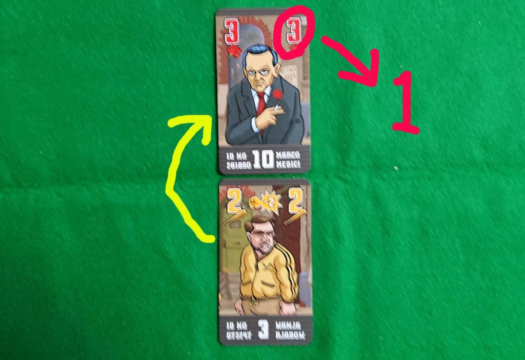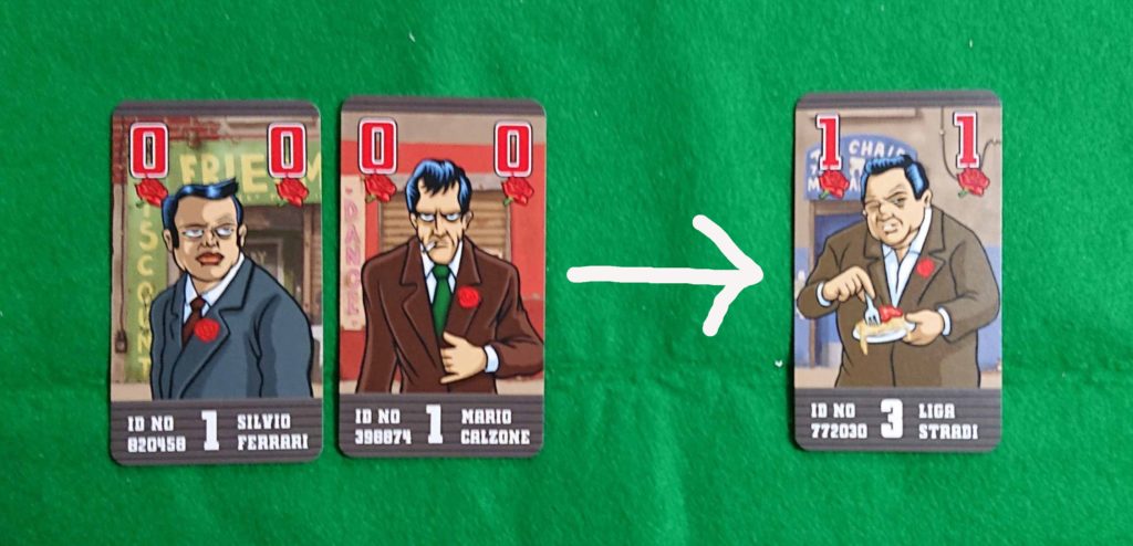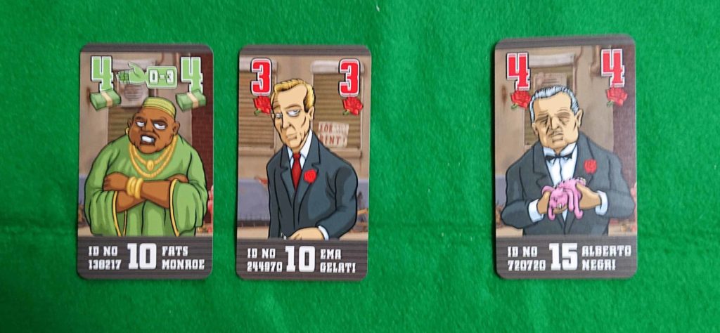 最終的に、組事務所にあるカードと手札に持っているカードが自分の組織です。そのカードの勝利点合計で勝敗が決まります。