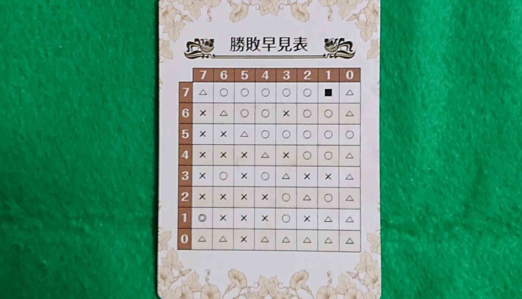 どちらもカードを出しきっても4回勝利が無い場合は、引き分けとなります。
