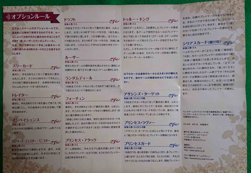 このゲームは、オプションルールも沢山あります。下の写真がそのオプションルールです。14個のオプションルールがあります。