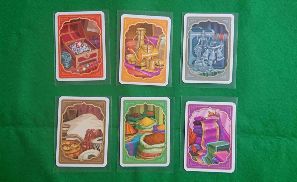 下が品物カードです。上段がダイヤモンド・金・銀、下段が皮革・スパイス・布です。上の段が高額商品です。