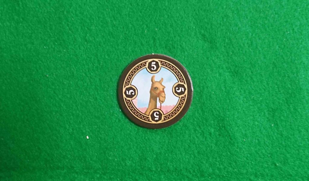 下は、ラクダトークンです。ラウンド終了時に多くのラクダカードを持っているプレイヤーがラクダトークンを獲得します。(5点)