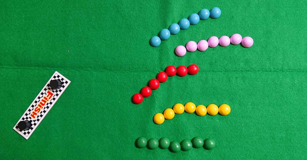 スタートラインもフィニッシュラインも自由に決めることが出来るので、短い距離・長い距離いろいろ楽しめます。子ども達とプレイしても楽しいです。とにかくゴールがいろいろ動くのでテーブルいっぱいにイモムシが動き回るのが面白いですね。