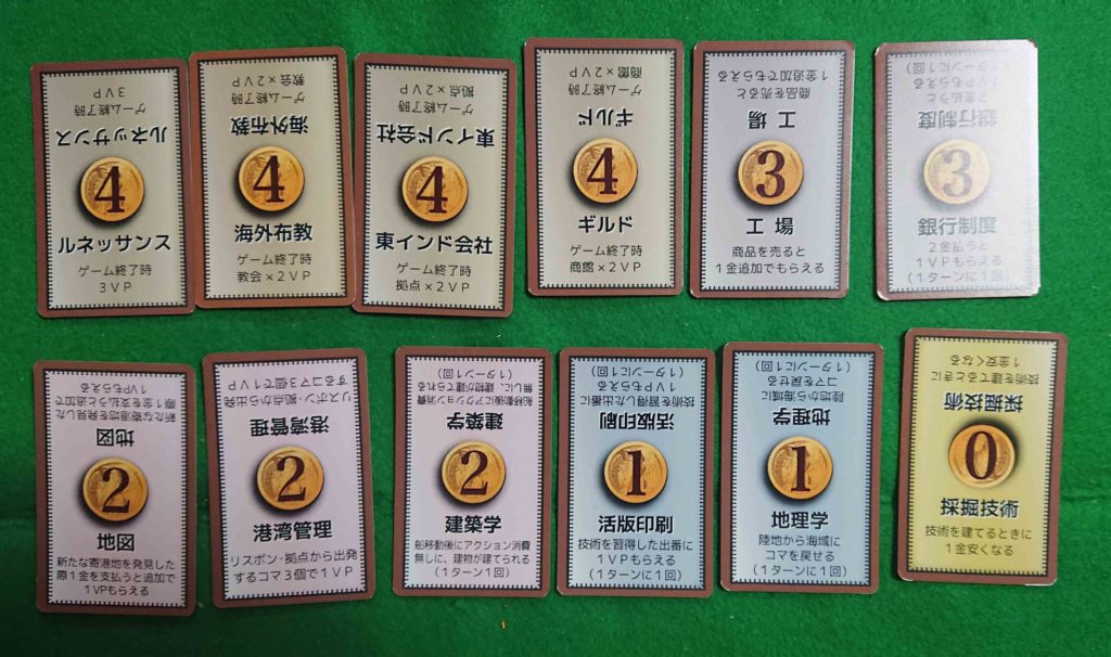 技術カードに記されているコストを払うことによって、技術カードを獲得できます。これ以降その技術を使用することが出来ます。