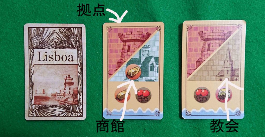 各寄港地カードに描かれている建物2個のうち1軒を建てることが出来ます。