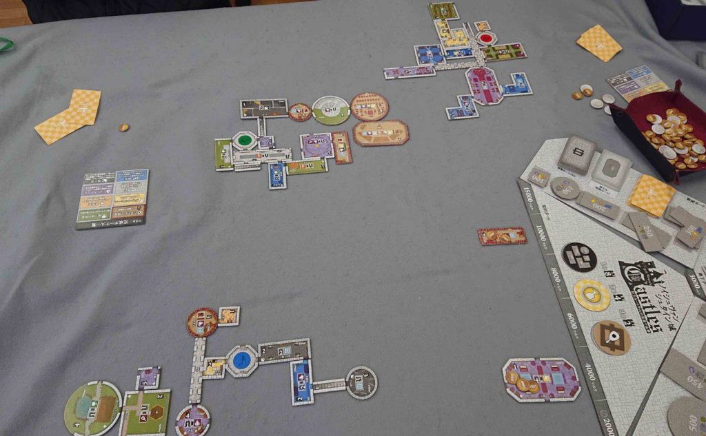 お城を作り上げていくボードゲームです。各部屋を競りで獲得してそれを配置していきます。部屋にはそれぞれ得点があります。