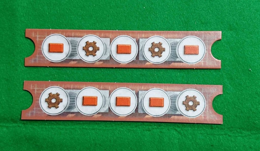 ここにプレイヤーコマを乗せて手順を決め、レンガ・歯車を獲得します。