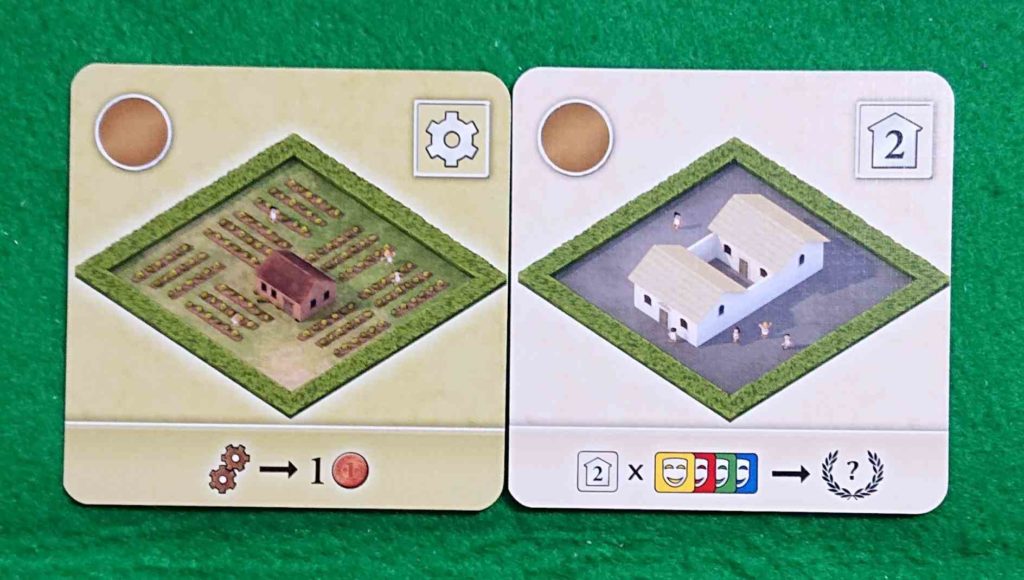 ある特定の建物をたてるおよび生産フェイズではレンガ・お金・影響チップを得ることができます。