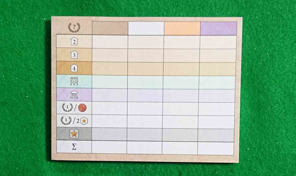 街の配置によって得点を獲得します。得点方法は5つあります。
