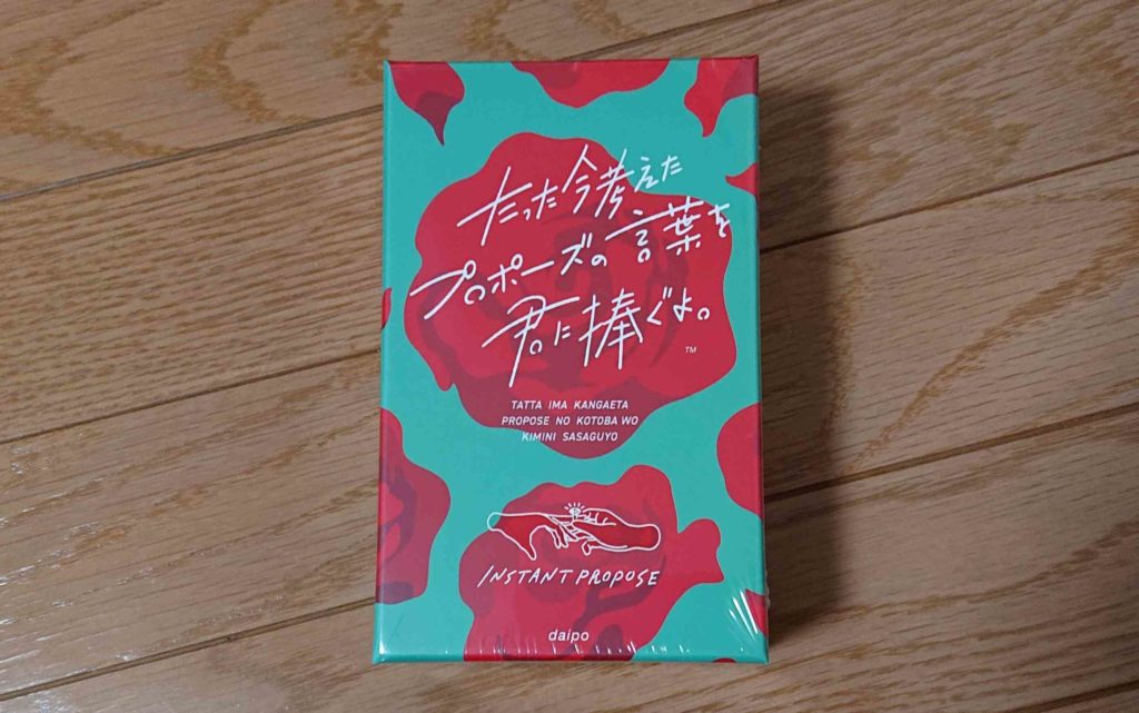 これはゲームの名前を見て思わず買ってしまいました。配られたカードでプロポーズの言葉を作り1番評価の高いプレイヤーに得点が入る言葉遊び系です。