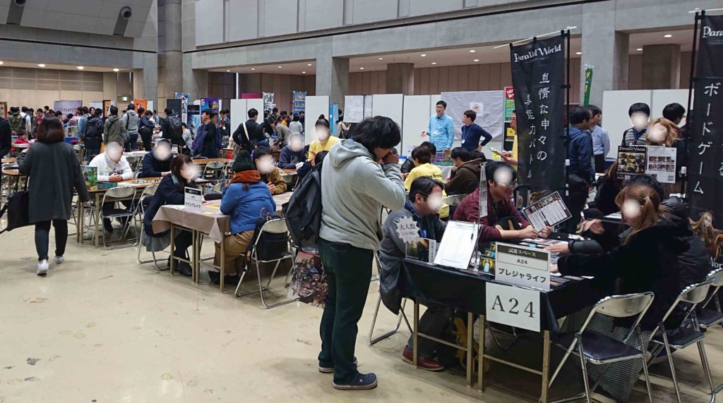 多くの方がゲームの試し遊びをしていました。私は1人でいったので、なかなか入りにくい感じでしたが、誰もいないところに行ってそのゲームを販売している人にルールとか聞いたりちょっと試しプレイさせてもらいました。