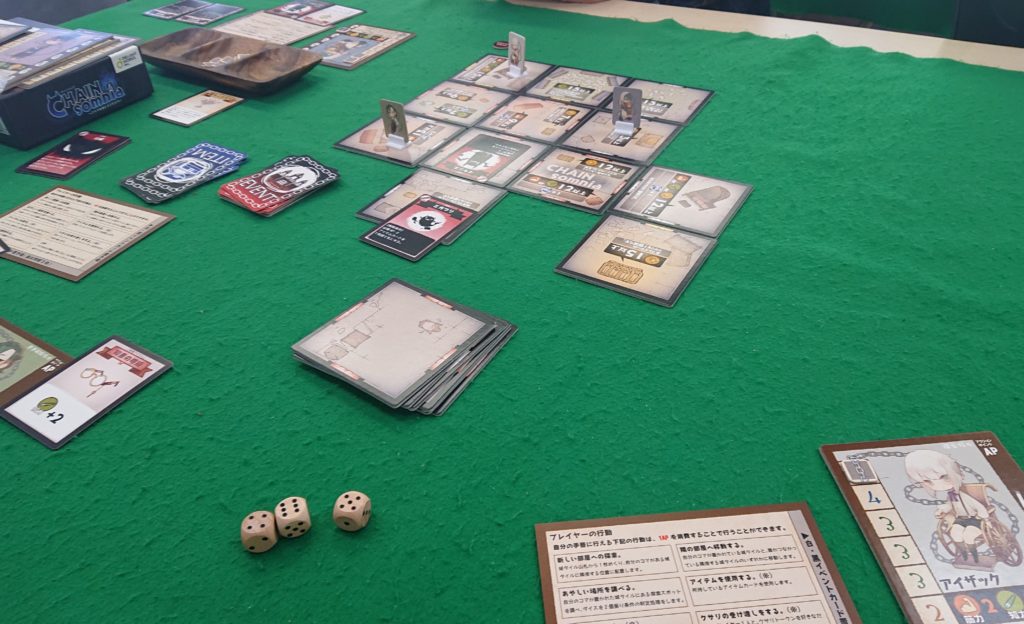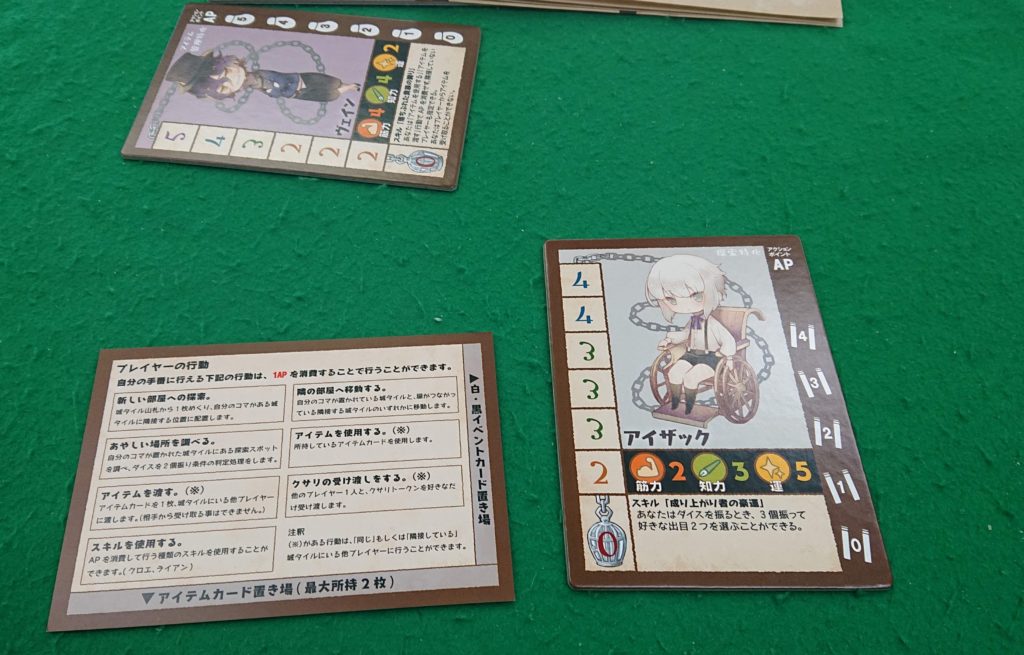 恐怖の度合いは鎖で示されていて、鎖が多くなるとアクション回数も減っていきます。同じ部屋にいるとお互いに鎖を取り合ったり(恐怖を消していく)することが出来ます。