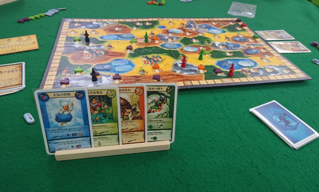 魔女やドルイドとなり、塔にポーションを届けるボードゲームです。各プレイヤーが持っている同じ10枚の行動カードから、4枚の行動カードを選んでアクションを行います。同じカードをプレイするときは、他のプレイヤーも同じカードを持っていたら同じアクションをしなくてはなりません。