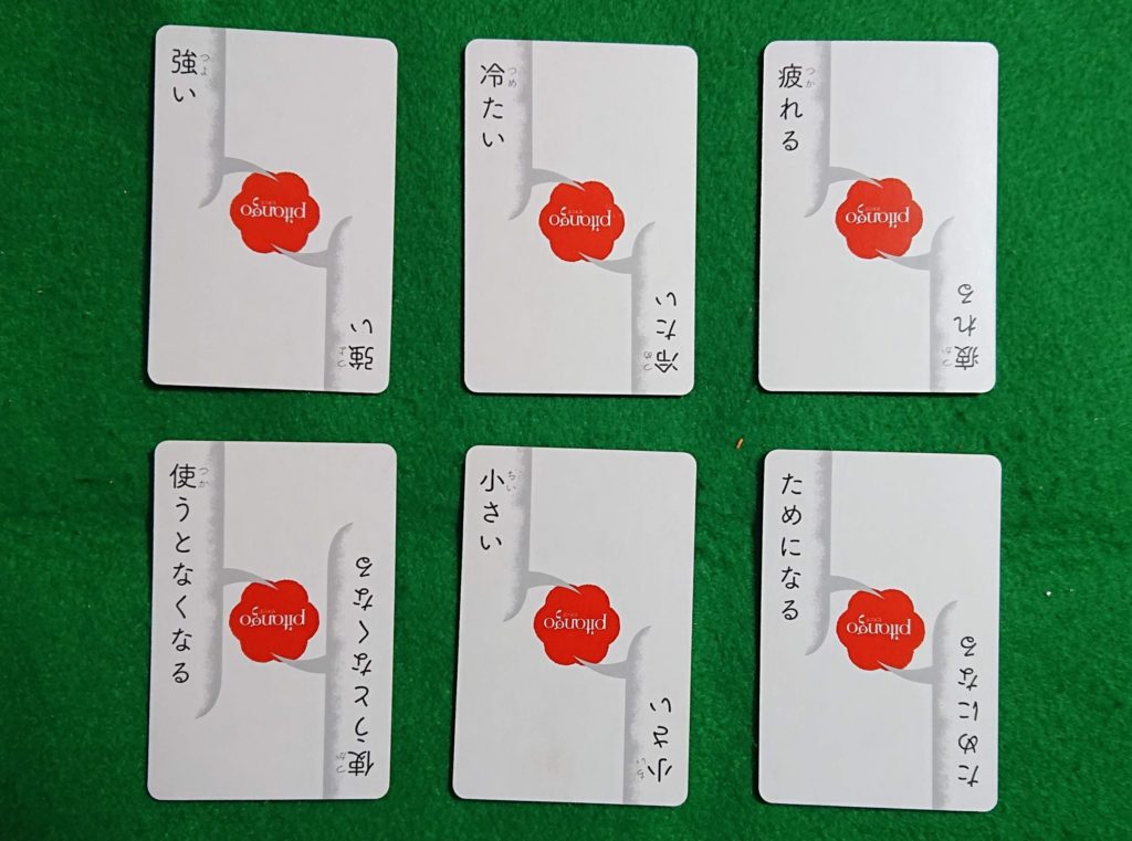 「アジア大陸」と言って「あつい」のカードの上に重ねて置きます。次は「く」から始まる言葉を言います。