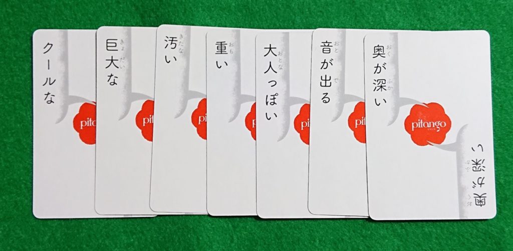 お題カードをよくシャフルして、各プレイヤーに7枚配ります。