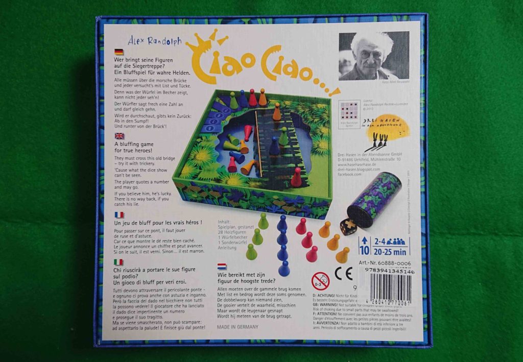 いろいろな面白いゲームを世に送り出した、アレックス・ランドルフさんの傑作の1つ「チャオチャオ」の紹介です。簡単なルールなのにブラフによる盛り上がりが楽しいボードゲームとなっています。仲の良いメンバーと一緒にプレイするとより楽しめると思います。