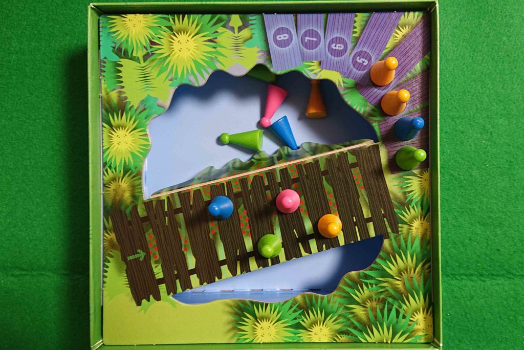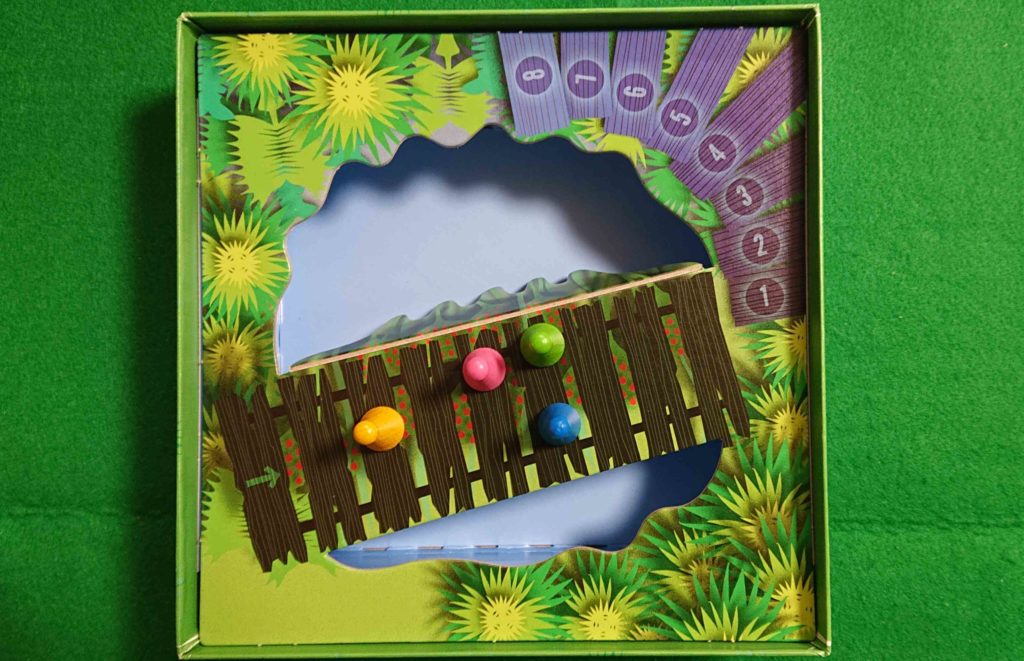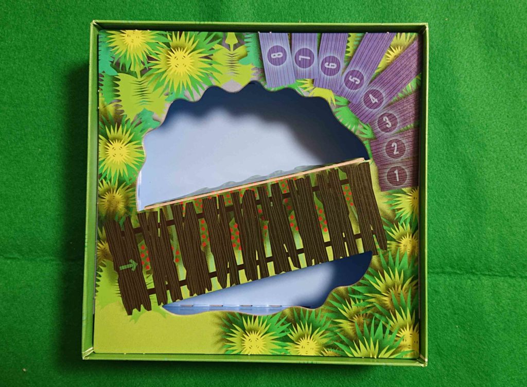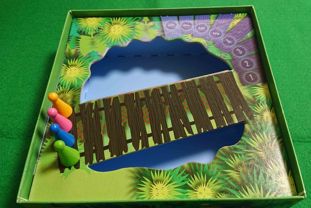 ボードをセットします。ゲームの箱がそのまま橋になります。