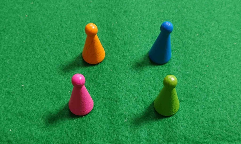 例えば、下の写真でピンクプレイヤーが「2」と言ってコマを進め、黄色プレイヤーが「ダウト」宣言した場合、ピンクプレイヤーのコマは谷底に落とされます。