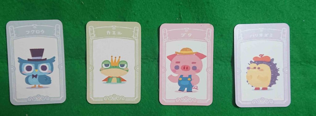 各プレイヤーは動物カードを1種類選び、その動物カード2枚を持ちます。