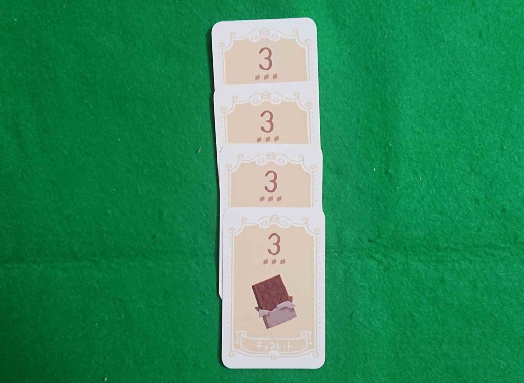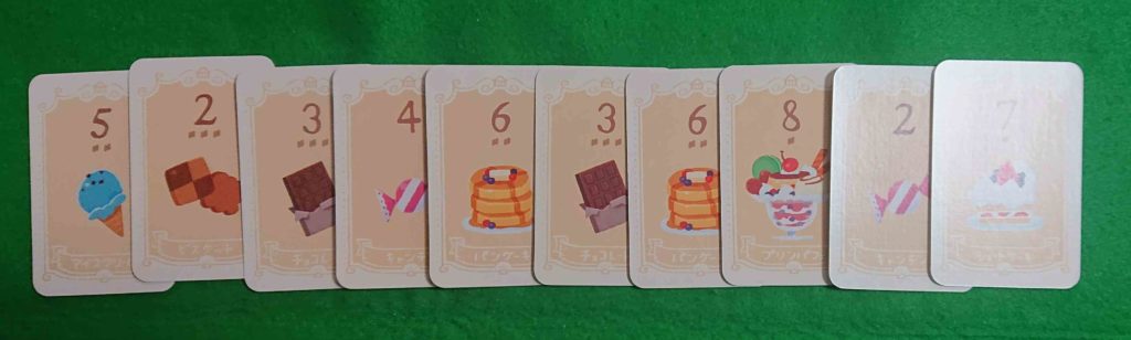複数のプレイヤーがいる場合は、再びそのお菓子カードを2つに切り分けて好きな方をそのプレイヤーだけで選んでいきます。