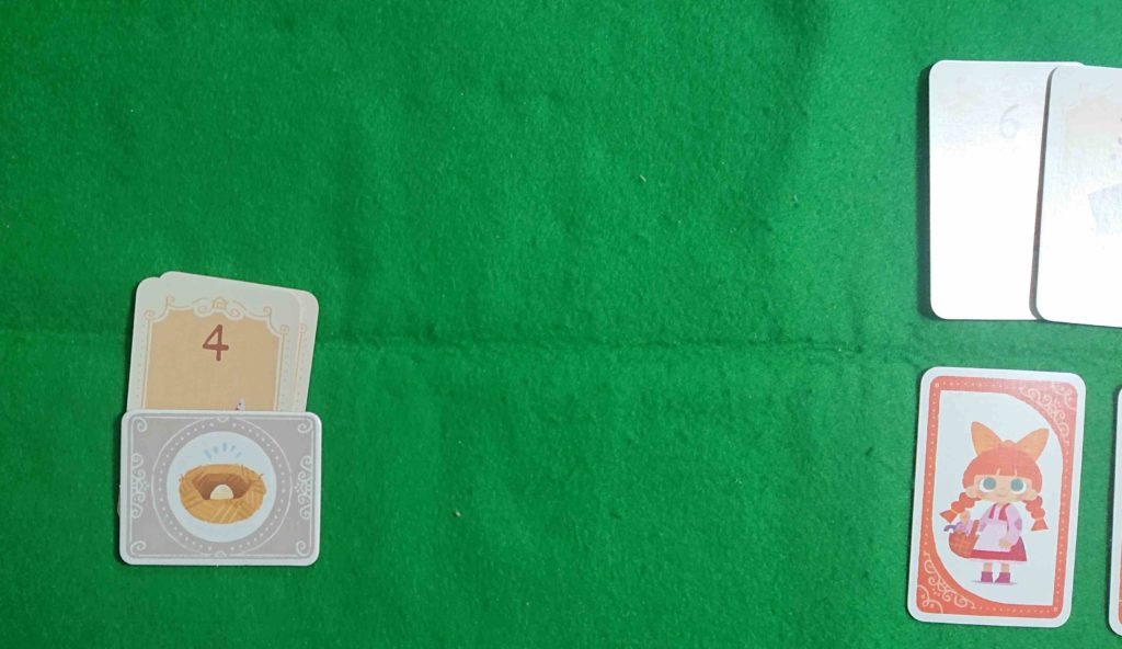 2.残っているカードが1枚の時は、そのカードをことりの巣タイルの下に置きます。その後、その場所を選んだプレイヤーは、クッキーマンカードを1枚づつ受け取ります。(クッキーマンカードは受け取りを拒否することは出来ません。)