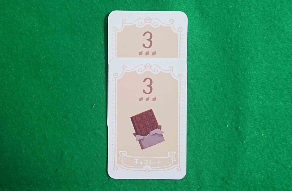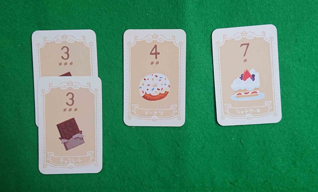 各プレイヤーは一斉に好きな方を選びます。選んだカードのグループが1人ならばそのグループのお菓子カードを全て獲得出来ます。