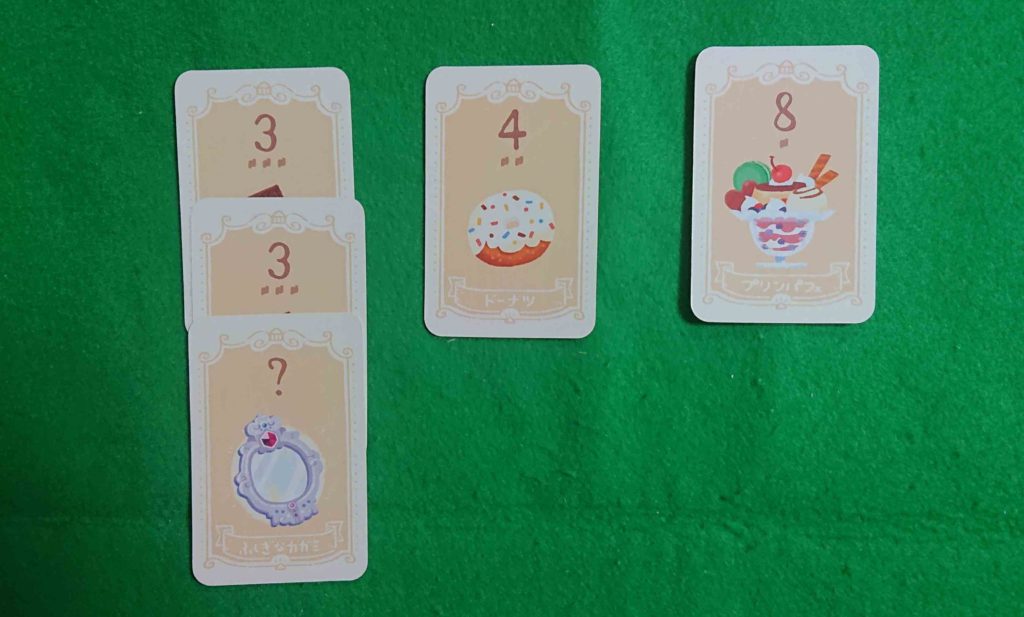 右がふしぎなカガミカード、既に獲得しているお菓子カードと一緒に並べると同じカードとして扱われます。