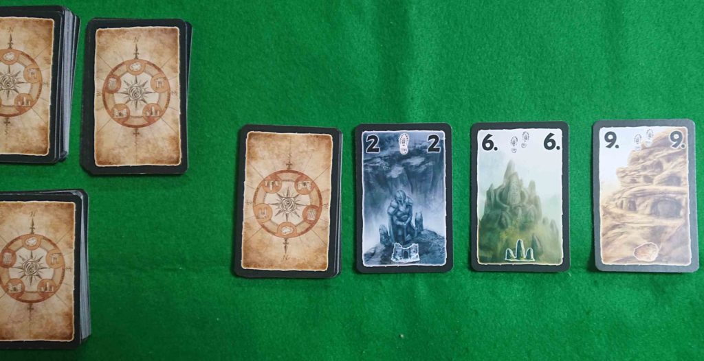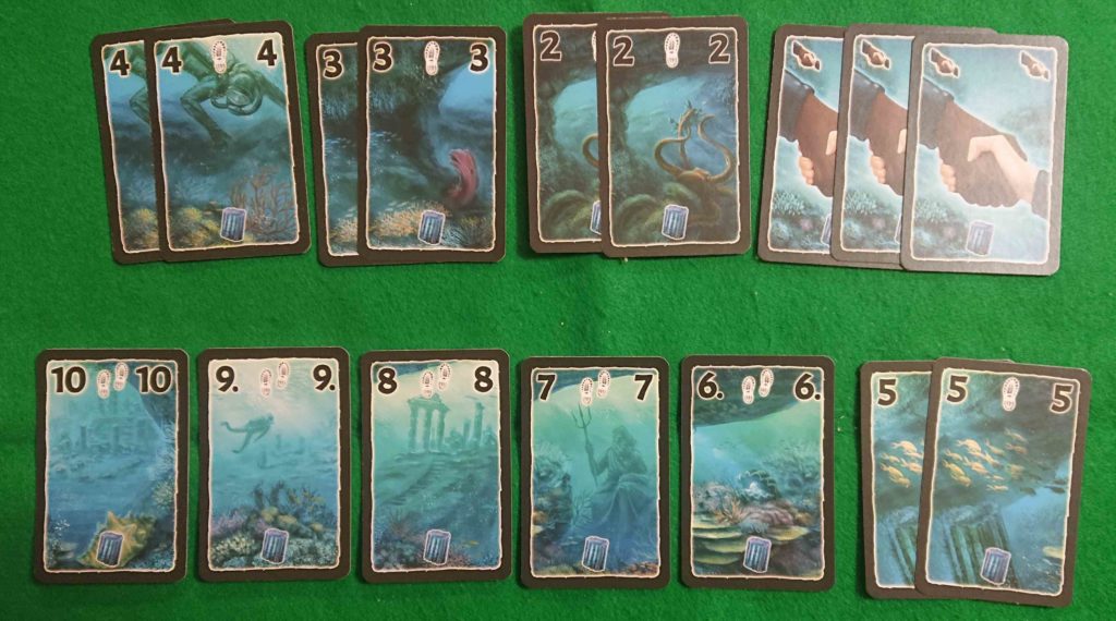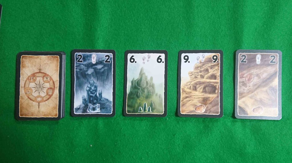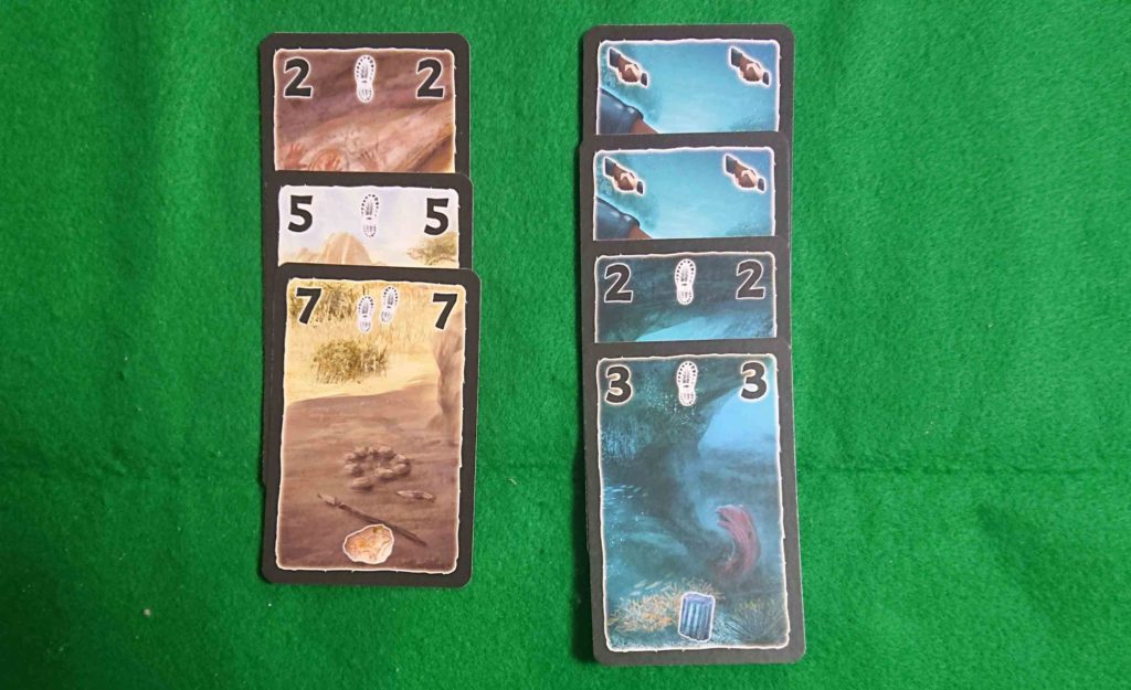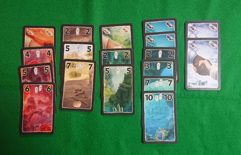 カード並べるときに数字の昇順(小さい数字から大きい数字)に並べなくてはなりません。足跡の数がゲーム終了時の得点になります。